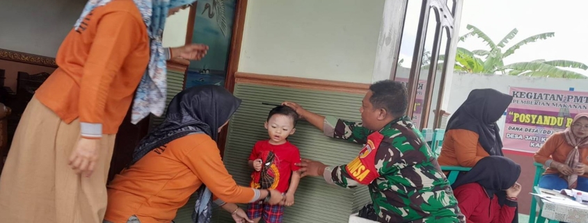 Blitar – Dalam upaya mendukung program pemerintah untuk mencegah dan percepatan penurunan angka stunting, Babinsa Desa Jati, Koramil 0808/08 Udanawu Kodim 0808/Blitar Serda Cahyo Eko, secara aktif mendampingi kegiatan Posyandu yang dilaksanakan oleh kader Posyandu Durian bertempat dirumah Kader Posyandu Ds. Jati Kec. Udananwu Kab. Blitar, Kamis (01/05/2025).
