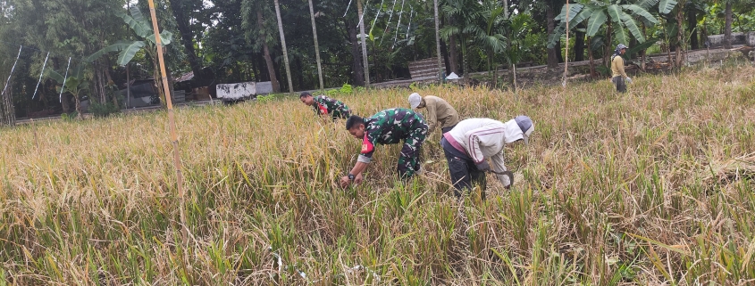 Keterlibatan TNI dalam Pertanian: Babinsa Ikut Serta dalam Panen Padi di Jl. Makam Bogangin