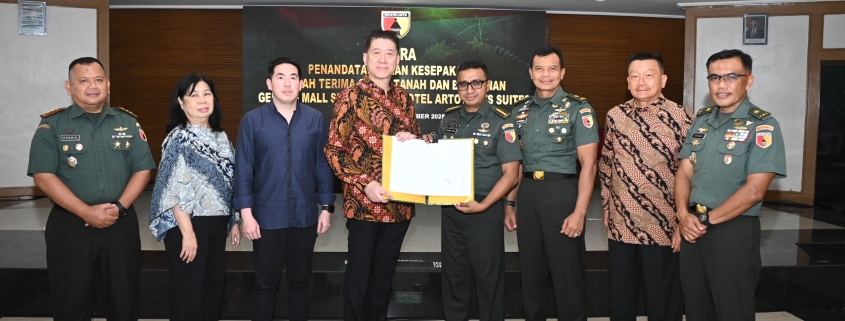 SURABAYA – Momentum penting terjadi di lingkungan Kodam V/Brawijaya saat pelaksanaan kegiatan penandatanganan kesepakatan serah terima objek tanah dan bangunan Mall Sutos serta Hotel Artotel TS Suites antara Kodam V/Brawijaya dengan PT Andiraga Propertindo. Kegiatan berlangsung khidmat di Aula Kodam V/Brawijaya, Senin (22/12/2025).
