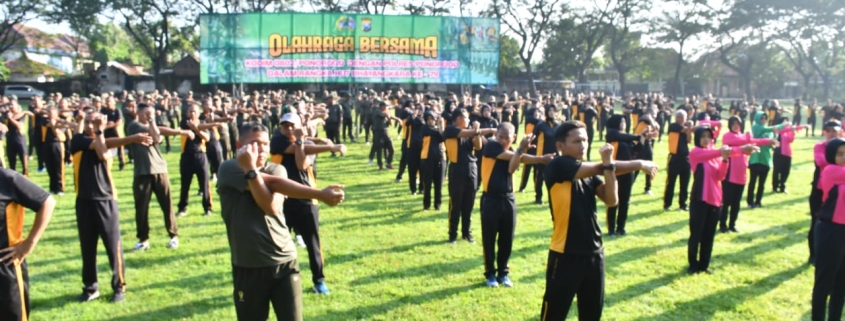 Olahraga Bersama TNI – Polri (Kodim Ponorogo dan Polres Ponorogo) diawali dengan senam pemanasan dilajutkan jalan santai di seputaran Kota Kabupaten Ponorogo dengan jarak tempuh sekitar 1,5 kilometer dan dilanjutkan senam bersama di Lapangan Merak Kodim 0802/Ponorogo.