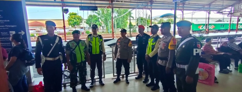 Madiun, Jawa Timur – Kodim 0803/Madiun bersama dengan Polres Madiun Kota dan mengerahkan personelnya untuk mengamankan puncak arus balik Hari Raya Idul Fitri 1445 H/2024 M di Stasiun Kota Madiun. Minggu (14/4/2024).