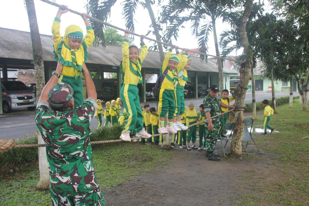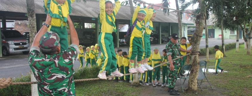 Kegiatan dilanjutkan dengan peragaan Peraturan Baris Berbaris serta outbound ringan melintasi jembatan tali satu. Pendampingan prajurit membantu menumbuhkan keberanian, keseimbangan, dan kebersamaan di antara peserta didik.