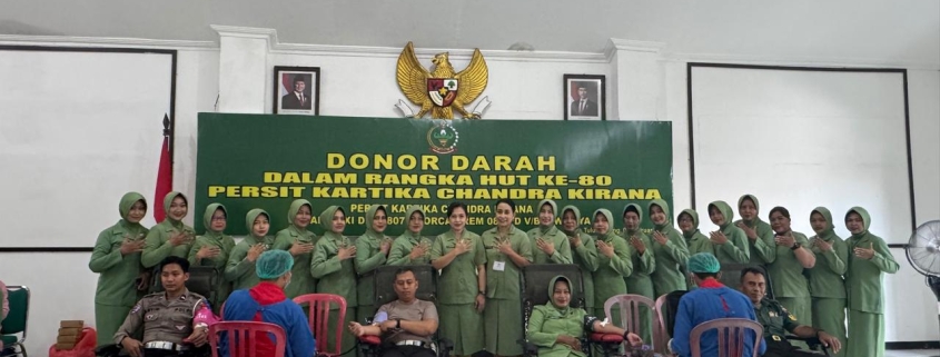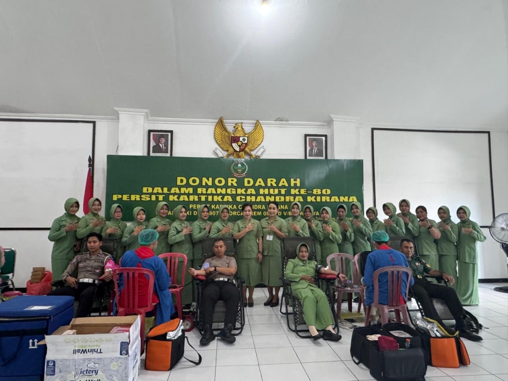 Donor darah merupakan salah satu rangkaian kegiatan menyambut HUT ke-80 Persit Kartika Chandra Kirana Tahun 2026. Pelaksanaan kegiatan menitikberatkan pada kepedulian sosial serta penguatan kemanunggalan TNI bersama masyarakat melalui aksi nyata membantu pemenuhan stok darah wilayah.