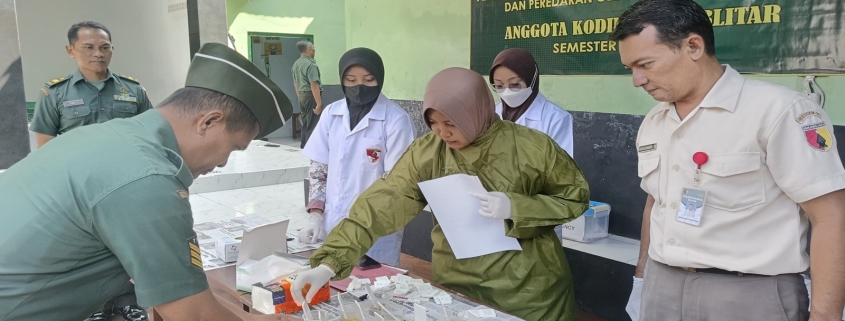 Kegiatan ditutup dengan sesi pemeriksaan urine kepada 38 personel TNI dan ASN Kodim 0808/Blitar sebagai bentuk nyata komitmen dan upaya pencegahan dini terhadap penyalahgunaan narkoba di lingkungan satuan.