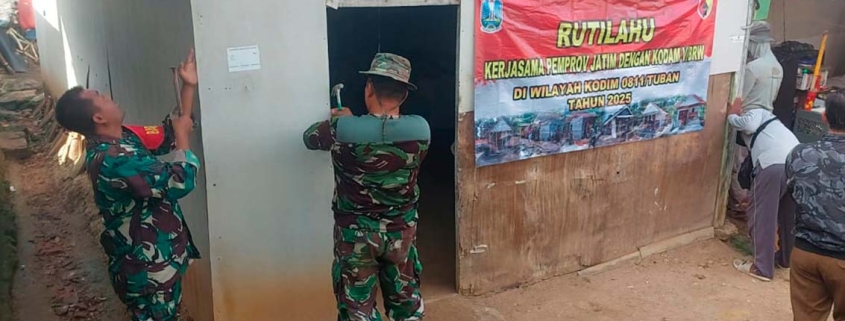 TUBAN, – Kodim 0811/Tuban merenovasi Rumah Tidak Layak Huni (RTLH) yang menjadi salah satu sembilan program Ibu Gubernur Jawa Timur tersebut, hari ini mulai dikerjakan personil dari Koramil 0811/12 Bancar, yang berlokasi di Dusun Brambang, Desa Sukoharjo, Kecamatan Bancar, Kabupaten Tuban. Jawa Timur. Selasa (19/08/2025).