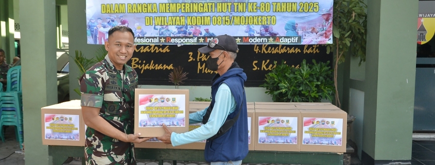 Bertempat di Makodim 0815/Mojokerto, Jalan Majapahit Nomor 01, Kota Mojokerto, Jawa Timur, Jumat (12/09/2025), kegiatan sederhana namun penuh makna ini dihadiri Dandim 0815/Mojokerto Letkol Inf Rully Noriza, S.I.P., M.I.P., didampingi Kasdim Mayor Inf Suwadi, Pabungdim Mayor Inf Desto Jumeno, serta para perwira staf. Dalam sambutannya, Dandim menyampaikan, sedekah prajurit ini merupakan wujud kepedulian personel Kodim 0815 yang dengan tulus menyisihkan sebagian gajinya setiap bulan untuk dibagikan kepada mereka yang membutuhkan.