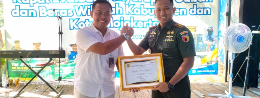 Penghargaan ini diserahkan secara langsung Kepala Kancab Bulog Mojokerto, Muhammad Husin, S.H, M.H., kepada Dandim 0815/Mojokerto Letkol Inf Rully Noriza, S.I.P., M.I.P., di Black Café, Jalan Raya Prajurit Kulon Nomor 10, Kelurahan Pralon, Kecamatan Pralon, Kota Mojokerto, Jawa Timur, Rabu Selasa (03/06/2025).
