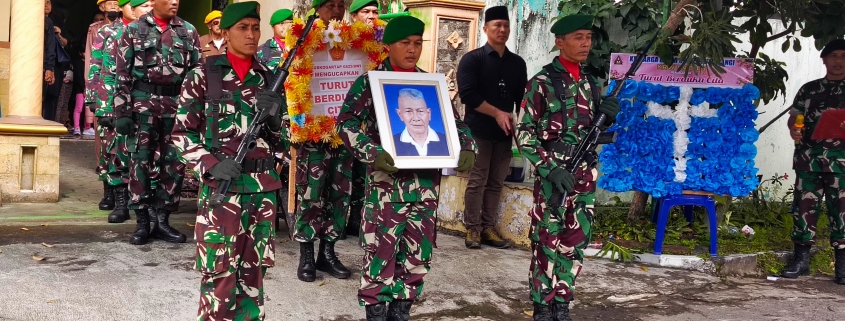 Banyuwangi,- Kodim 0825 Banyuwangi melalui Koramil 0825/21 Kalipuro melaksanakan upacara penghormatan terakhir dan pemberangkatan jenazah Almarhum Peltu (Purn) Pratisto Hardjo, pada Senin (28/07/2025). Upacara berlangsung di rumah duka Perum Kalipuro Asri A 153, Kecamatan Kalipuro, Kabupaten Banyuwangi, sebelum jenazah diberangkatkan menuju Taman Makam Pahlawan (TMP) Wisma Raga Satria, Banyuwangi.