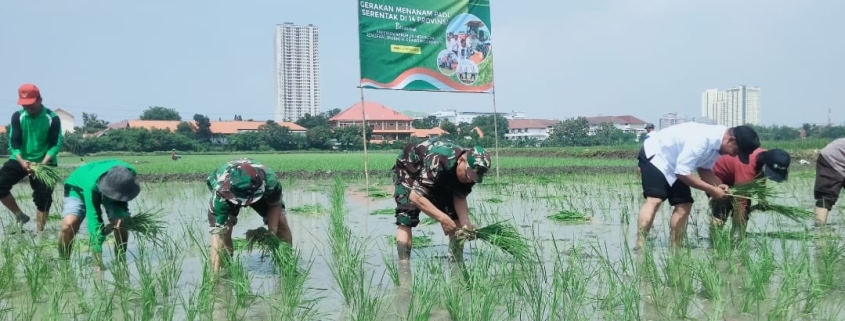 Kodim 0830/Surabaya, Dinas Pertanian, dan Petani Sukolilo Tanam Padi Serentak, Dukung Swasembada Pangan Nasional.