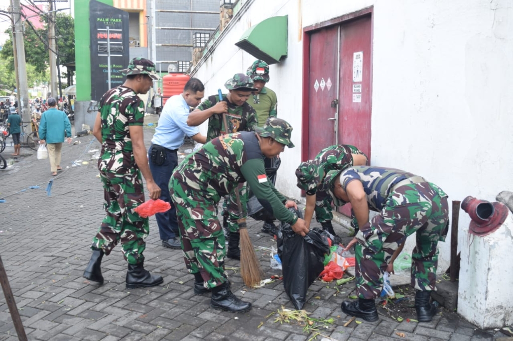 Surabaya – Dalam rangka memperingati Hari Juang Kartika (HJK) ke-79 dan HUT Kodam V/Brawijaya ke-76, Kodim 0831 Surabaya Timur mengadakan kegiatan Karya Bakti dengan melaksanakan pembersihan Pasar Tambakrejo yang terletak di Jl. Kapas Krampung No. 45, Tambakrejo, Kecamatan Simokerto, Surabaya.