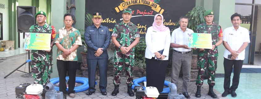 Dalam acara tersebut, Dandim 0815 bersama Sekdakab secara resmi menyerahkan dua unit pompa air kepada perwakilan Poktan dan Babinsa. Penyerahan ini dilanjutkan dengan pemberangkatan pompa air secara tersebar di seluruh titik sumber air wilayah Mojokerto Raya.