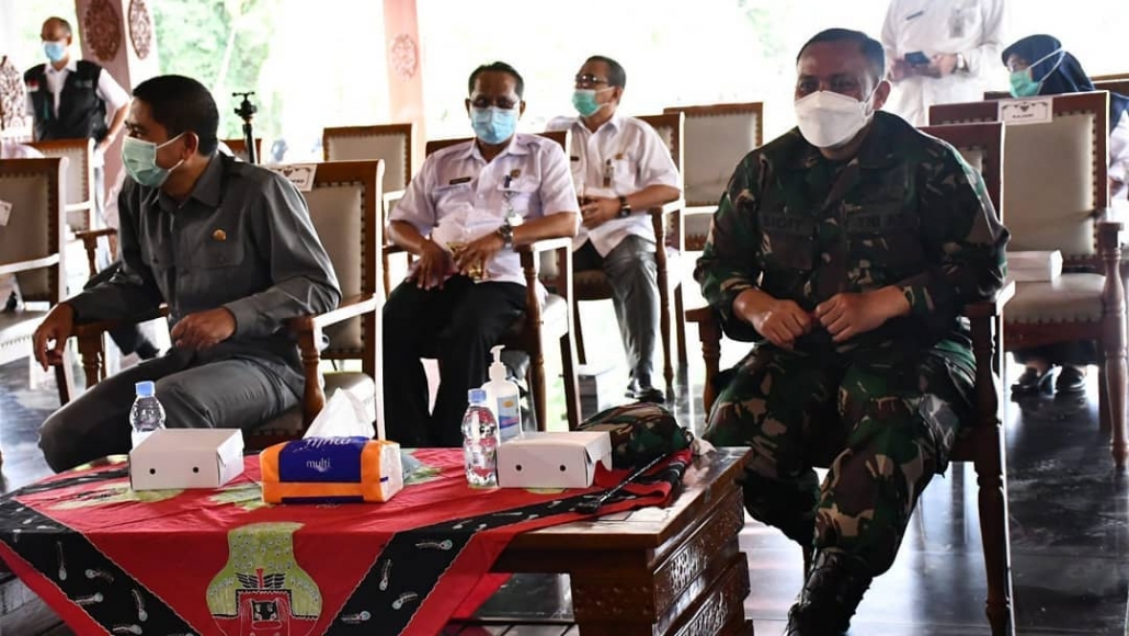 Komandan Kodim 0802/Ponorogo, Letkol Inf Sigit Sugiharto hari ini menghadiri kegiatan pencanangan vaksinasi covid-19 yang digelar di Pendopo Kabupaten Ponorogo, Rabu (27/01/2021).
