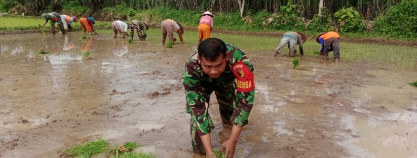 Selain menanam padi, Babinsa juga membantu dalam menyiapkan dan mengolah lahan hingga masa panen mendatang.