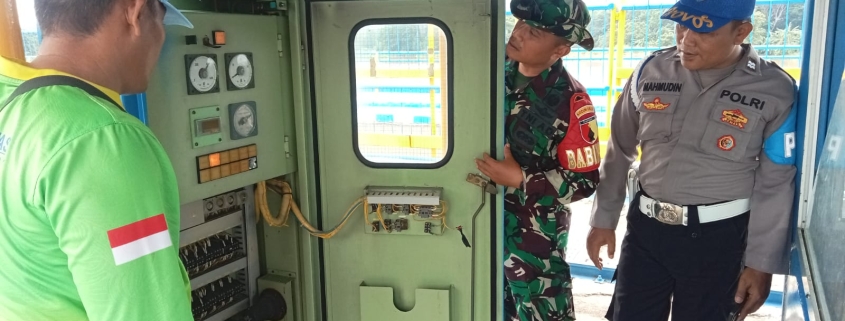 Pengecekan dimulai pukul 15.00 WIB hingga selesai. Bersama Bhabinkamtibmas Desa Tapen, Aiptu Mahmudin, dan Kanit Sabhara, Aiptu Anton, serta pengelola bendungan, Supandi, Serka Lolok memeriksa elevasi TMA yang tercatat berada pada angka 120,00 dengan pintu tilting terbuka 60° dan enam pintu radial dalam keadaan tertutup. Dari hasil pemantauan, kondisi dinyatakan normal dan aman.