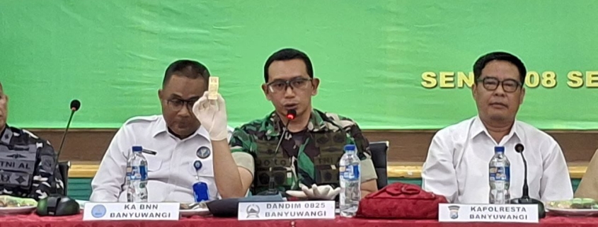 Dandim 0825/Banyuwangi menegaskan komitmen TNI bersama Polri dan instansi terkait dalam memberantas narkoba di Bumi Blambangan. “Kami tegaskan, tidak ada ruang bagi bandar maupun pengedar narkoba di Banyuwangi. TNI akan selalu bersinergi dengan Polri dan masyarakat untuk menjaga wilayah tetap bersih dari narkotika,” tegas Letkol Arh Joko Sukoyo. Saat ini kasus sepenuhnya ditangani Satresnarkoba Polresta Banyuwangi untuk pengembangan lebih lanjut.