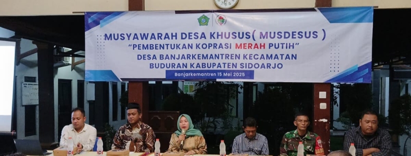 Sidoarjo, 17 Mei 2025 — Malam itu, Balai Desa Banjarkemantren dipenuhi semangat gotong‑royong ketika Pemerintah Desa bersama masyarakat menggelar Musyawarah Desa Khusus (Musdesus) untuk mendirikan Koperasi Merah Putih. Kegiatan yang dimulai pukul 19.30 WIB ini merupakan langkah nyata menindaklanjuti instruksi Presiden RI, Bapak Prabowo Subianto, agar ekonomi desa tumbuh kolektif dan berkeadilan.