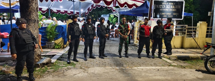 Kegiatan pengamanan tersebut melibatkan puluhan personel gabungan yang tersebar di beberapa titik strategis di sekitar lokasi peribadatan. Petugas ditempatkan di area parkir, pintu masuk gereja, serta jalur lalu lintas sekitar untuk memastikan kelancaran arus kendaraan dan keamanan jemaat yang hadir. Kegiatan ini berkoordinasi dengan pihak Kepolisian Sektor Kartoharjo dan petugas keamanan internal gereja untuk memaksimalkan pengawasan dan pencegahan gangguan selama ibadah berlangsung.