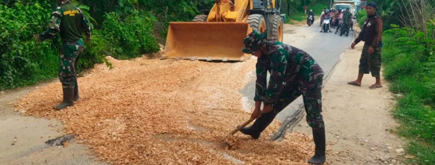 Koramil 0811/12 Bancar Bersama Masyarakat Perbaiki Jalan Rusak di Tuban