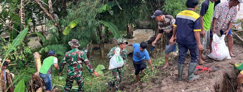 Koramil 0814 11/Sumobito Aktif Perbaiki Tanggul Longsor untuk Antisipasi Banjir