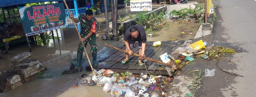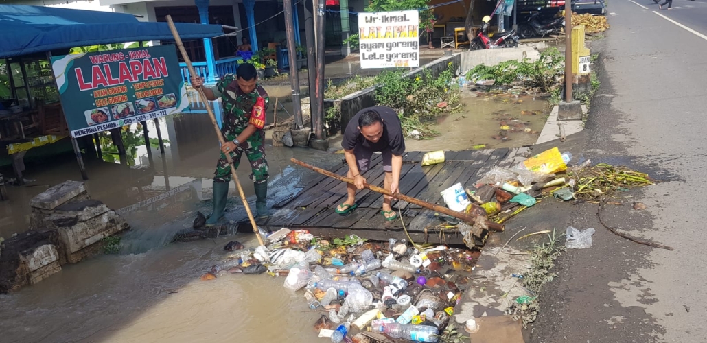 Koramil 0814/18 Jogoroto Ajak Warga Cegah Banjir dengan Bersihkan Sungai