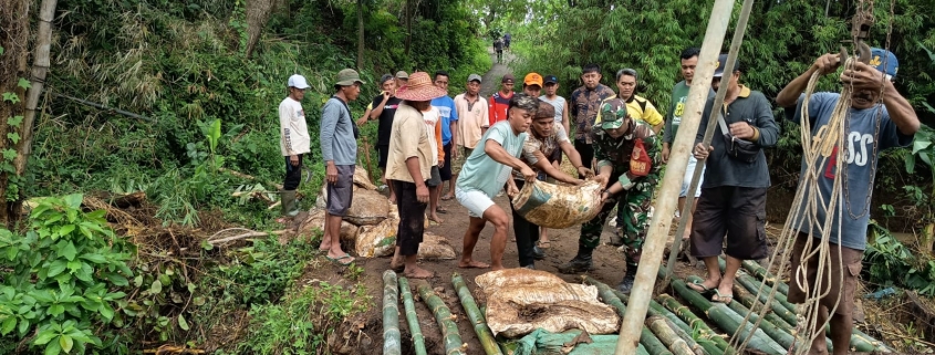 Koramil 0820-21/Maron Bersama Warga Bangun Jembatan Darurat Akses Vital Desa Satreyan Probolinggo