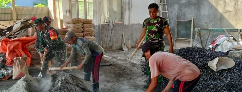 Koramil 0830-06/Benowo Laksanakan Karya Bhakti Pengecoran Panti Asuhan Yakarim Bersama Warga Babat Jerawat