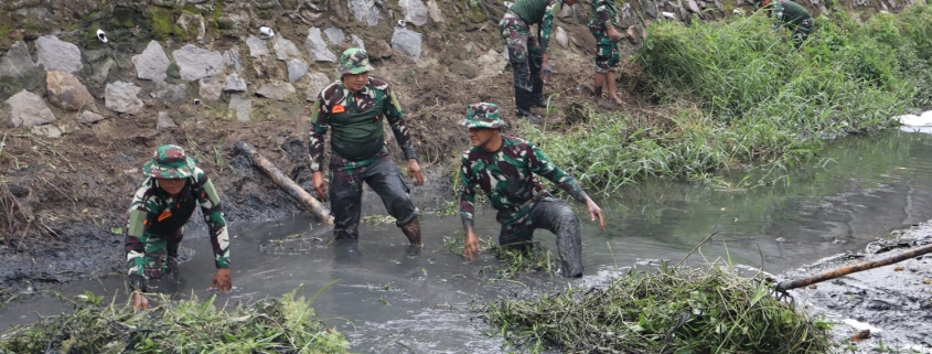 Koramil 0830-11/Rungkut Gelar Karya Bakti Bersihkan Sungai Sentong Peringati HUT Ke-1 Kodim Surabaya