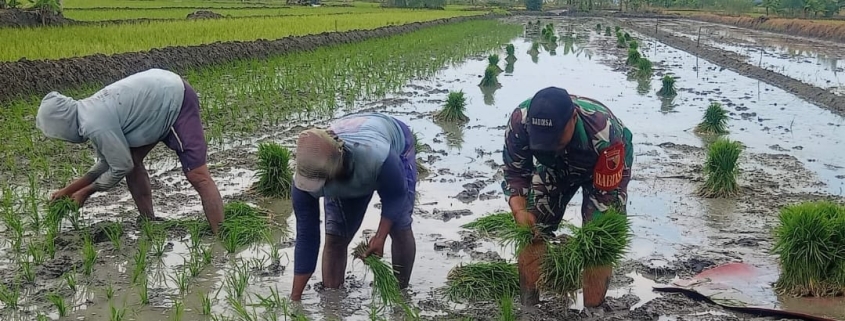 Koramil 0830-12 Kenjeran Dukung Ketahanan Pangan: Serda Suryaman Bantu Petani Tanam Padi