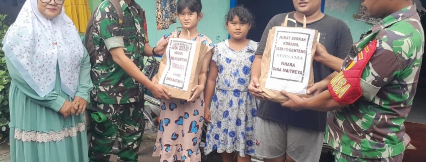 Surabaya – Kepedulian sosial kembali ditunjukkan oleh aparat teritorial dari Koramil 0830/15 Genteng melalui kegiatan bertajuk Jumat Berkah, yang digelar pada Jumat (20/6). Babinsa Kelurahan Kapasari, Serka Andy Wahyu bersama Serda Dwi Hadi, menggandeng Vihara Dana Maitreya untuk menyalurkan bantuan sembako kepada anak-anak yatim piatu yang berada di wilayah binaan mereka.