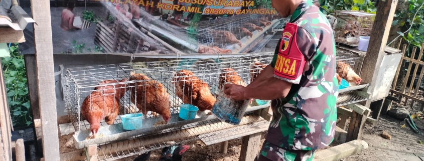 Surabaya – Koramil 0830/18 Gayungan turut berkontribusi dalam program ketahanan pangan nasional. Senin (9/6/2025), Serda Hery Santoso terlihat sibuk memberi pakan dan minum kepada ayam petelur di lingkungan Makoramil. Kegiatan ini merupakan wujud nyata dukungan TNI AD terhadap stabilitas ketersediaan pangan di Surabaya.