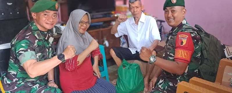 Koramil 0830-19/Karangpilang Laksanakan Anjangsana dan Berikan Bantuan Sembako kepada Warga