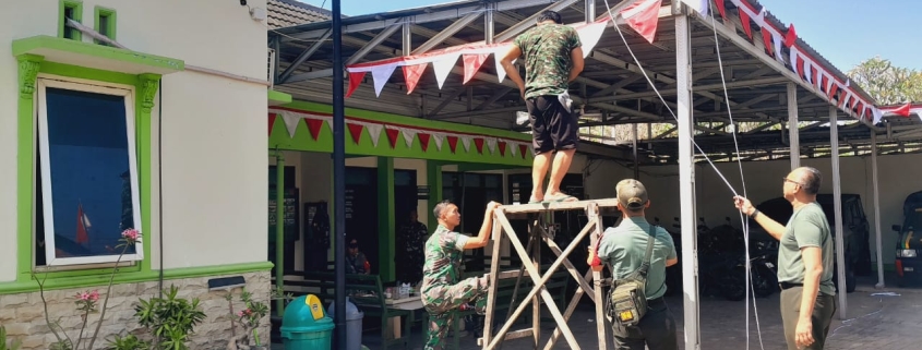 Koramil 0830-21/Lakarsantri Pasang Bendera dan Umbul-umbul untuk Tingkatkan Semangat Nasionalisme.