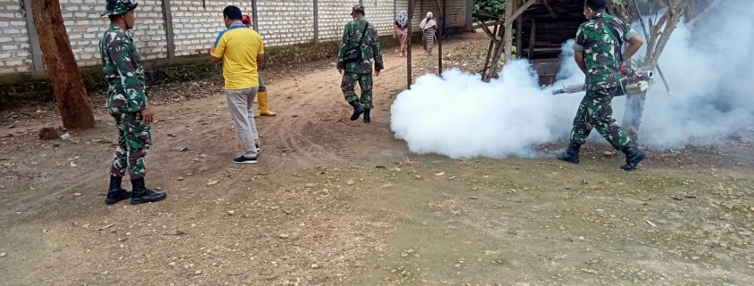 Sampang,- Anggota Koramil 0828/03 Omben bersama Tim Jumantik Puskesmas Omben melaksanakan kegiatan fogging di Desa Rapa Laok, Kecamatan Omben, Kabupaten Sampang, sebagai upaya pencegahan berkembangnya jentik nyamuk penyebab penyakit demam berdarah.