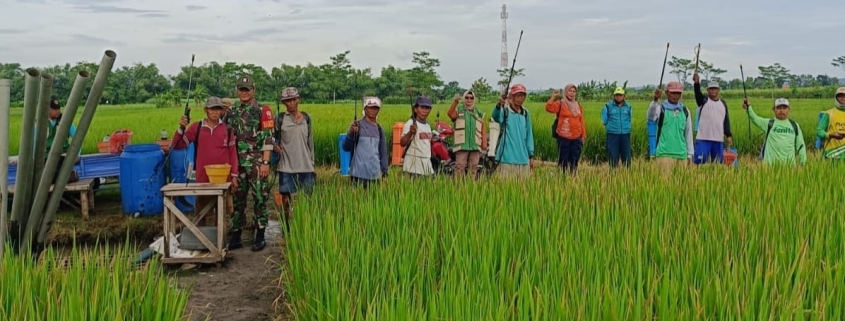 Danramil 0815/06 Kemlagi Kapten Inf Sudirman, S.H., menyampaikan bahwa kegiatan ini merupakan bentuk sinergi antara TNI, instansi pertanian, dan petani dalam upaya pencegahan serta pengendalian organisme pengganggu tanaman.