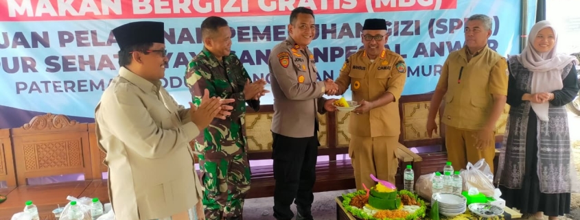 BANGKALAN — Koramil 0829-12/Modung bersama Forkopimcam menghadiri Launching Makan Bergizi Gratis (MBG) di dapur Yayasan Pondok Pesantren Al Anwar 2, Desa Patereman, Kecamatan Modung, Kabupaten Bangkalan, Senin (20/10/25). Kegiatan ini menjadi langkah nyata dalam meningkatkan asupan gizi masyarakat, khususnya bagi pelajar di wilayah setempat.
