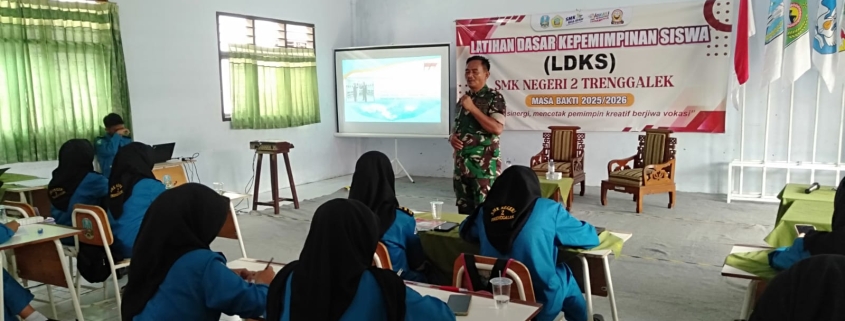 TRENGGALEK – Penguatan karakter kebangsaan di kalangan pelajar kembali digencarkan melalui kegiatan LDKS SMKN 2 Trenggalek yang dilaksanakan Minggu (16/11/2025). Koramil 0806-01/Trenggalek menghadirkan Bati Wanwil, Pelda M. Tajib, untuk memberikan pembekalan Wasbang dan Tata Upacara Sekolah kepada peserta didik.