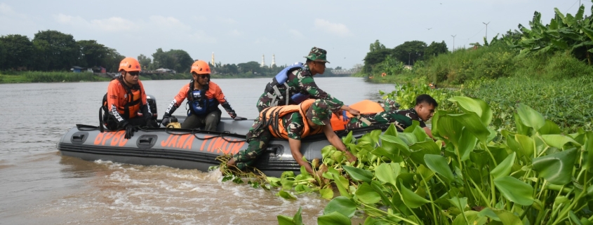 Korem 082/CPYJ dan Kodim 0815 Bersihkan Eceng Gondok Sungai Brantas Cegah Banjir