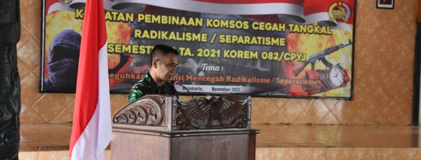 MOJOKERTO – Dalam rangka merawat kebhinekaan sekaligus untuk menangkal paham Radikalisme dan Separatisme dalam bingkai NKRI, Korem 082/CPYJ gelar Sosialisasi Cegah Tangkal Radikalisme dan Separatisme bertempat di Pendopo Griya Paramitra Cikaran No. 3 Kota Mojokerto, Rabu (17/11/2021).