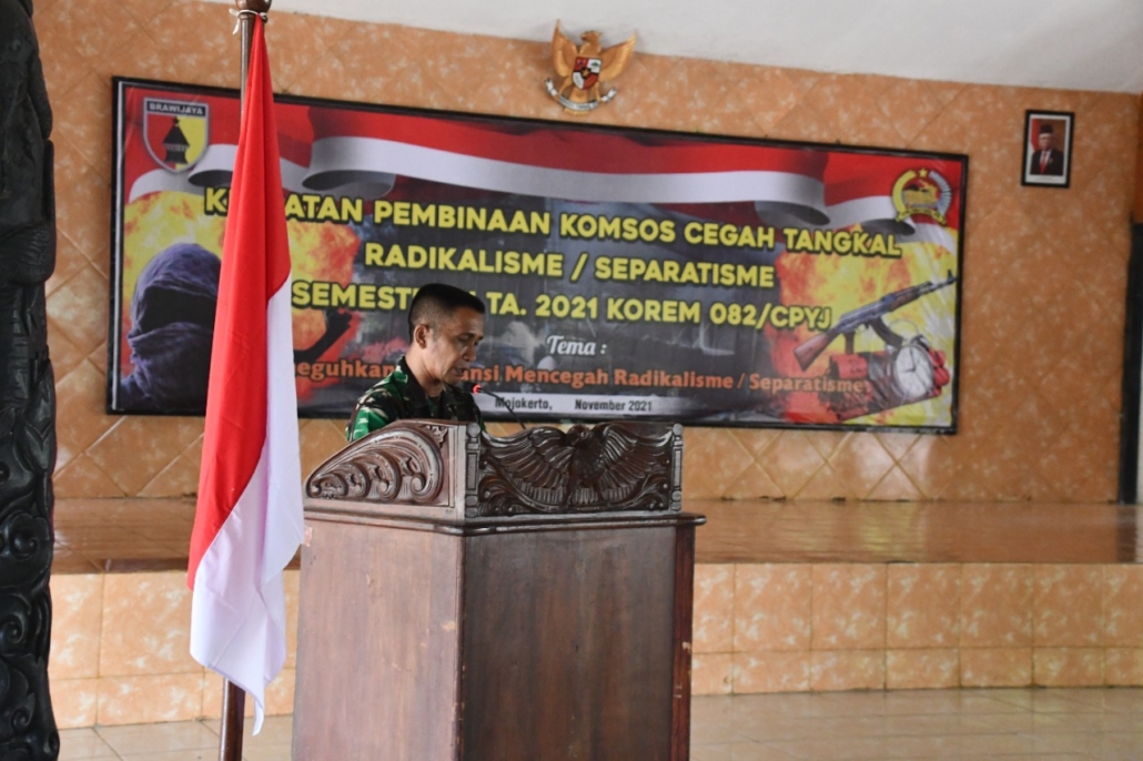 MOJOKERTO – Dalam rangka merawat kebhinekaan sekaligus untuk menangkal paham Radikalisme dan Separatisme dalam bingkai NKRI, Korem 082/CPYJ gelar Sosialisasi Cegah Tangkal Radikalisme dan Separatisme bertempat di Pendopo Griya Paramitra Cikaran No. 3 Kota Mojokerto, Rabu (17/11/2021).