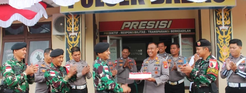 Nanga Badau – Dansatgas Pamtas RI-Malaysia Yonkav 3/AC, Letkol Kav Alfid Dwi Arisanto, S.Sos., beserta prajurit Satgas Pamtas Yonkav 3/AC mengunjungi Polsek Badau dalam rangka memperingati Hari Ulang Tahun (HUT) ke-79 Kepolisian Negara Republik Indonesia (Polri).