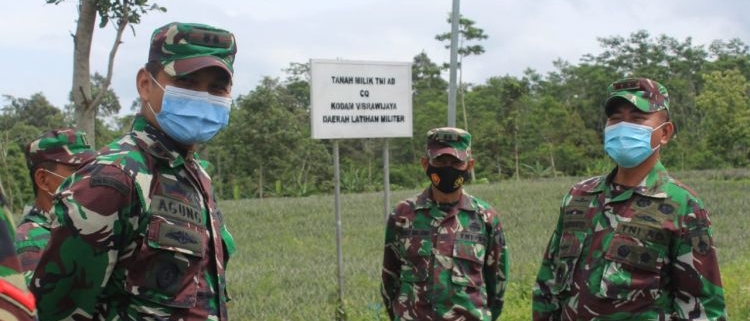 Danrem 082/CPYJ Kolonel Inf M. Dariyanto didampingi Dandim 0809/ Kediri Letkol Kav Dwi Agung Sutrisno, SE., M.Si (Han) meninjau tanah milik TNI-AD di Desa Sugih Waras Kecamatan Ngancar Kabupaten Kediri, Kamis, 21 Januari 2021.