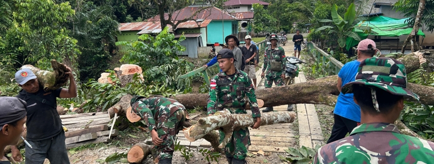 Langkah Preventif: Penebangan Pohon oleh Satgas Pamtas dan Warga di Sintang