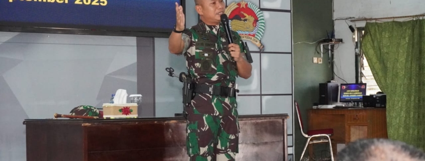 Lamongan,- Komandan Kodim 0812/Lamongan, Letkol Inf Deni Suryo Anggo Digdo memberikan Jam Komandan perdana kepada anggota Kodim 0812/Lamongan baik Prajurit maupun PNS TNI. Kegiatan dilaksanakan di Aula Kadet Soewoko Kodim 0812/Lamongan, Senin (08/09/2025).