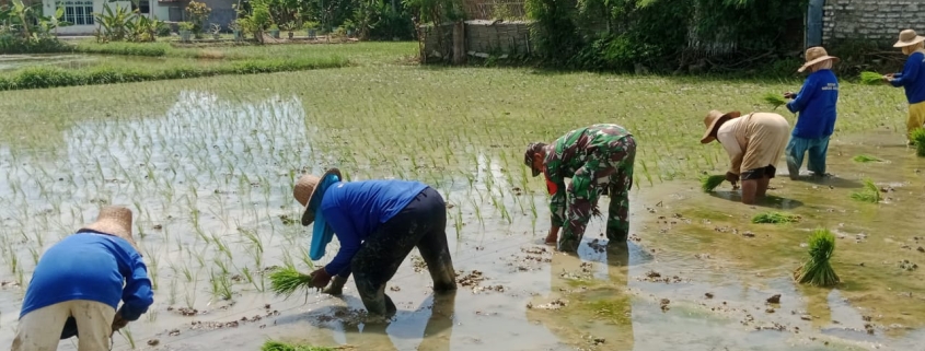 Metode Jajar Legowo Diterapkan di Kangenan, Babinsa Dampingi Petani Raih Panen Maksimal