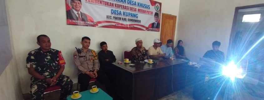 Bondowoso – Babinsa Posramil 0822/05 Pakem Desa Kupang, Serma Umarudin, menunjukkan komitmen nyata dalam mendampingi pembangunan desa dengan menghadiri secara langsung kegiatan Musyawarah Desa Khusus Insidental (Musdesus) Pembentukan Koperasi Merah Putih yang digelar di Balai Desa Kupang, Kecamatan Pakem, Kabupaten Bondowoso, Minggu (25/5).