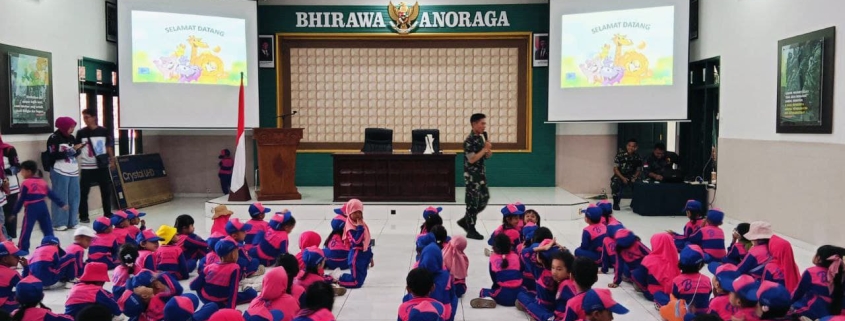 Banyuwangi,- Kodim 0825/Banyuwangi kembali menunjukkan komitmennya dalam membangun karakter generasi muda melalui Program “Gelas Wangi” (Gerakan Peduli Anak Sekolah Banyuwangi). Kali ini, program tersebut diimplementasikan melalui kegiatan outing class bersama Murid – Murid TK Pertiwi 14 Genteng Kulon. Kegiatan ini bertujuan memupuk rasa cinta tanah air, wawasan kebangsaan, serta kedisiplinan sejak usia dini.