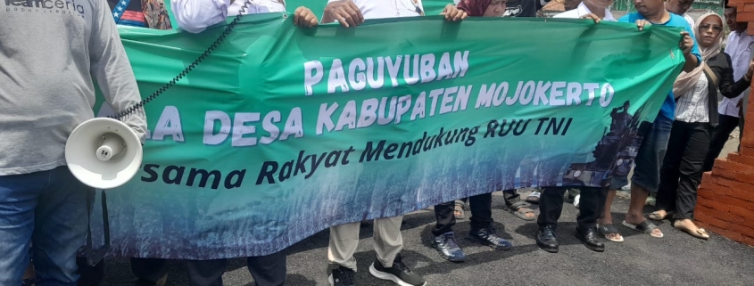 “Kami percaya bahwa pengesahan RUU ini sangat penting untuk memperkuat profesionalisme dan modernisasi TNI, demi menjaga kedaulatan dan keamanan Negara Kesatuan Republik Indonesia”, ucap bpk. Andik (pengurus PKD Mojokerto/ Kades Pandan Arum kec. Pacet, saat orasinya.