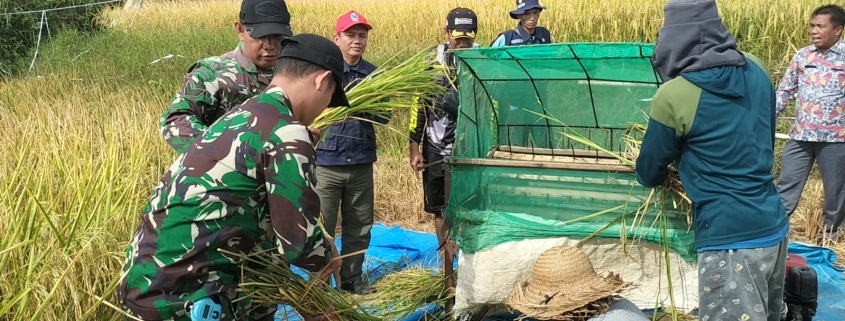 PAMEKASAN – Dalam upaya mendukung ketahanan pangan dan swasembada pangan nasional, Posramil 0826-12 Kadur bersama Kelompok Tani Subur Daleman, Penyuluh Pertanian Lapangan (PPL) Kecamatan Kadur, serta Dinas Ketahanan Pangan dan Pertanian (DKPP) Kecamatan Kadur melaksanakan panen raya padi di Dusun Daleman, Desa Kadur, Kecamatan Kadur, Kabupaten Pamekasan, Jumat (14/02/2025).