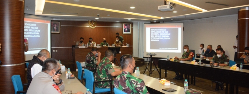 Surabaya,- Pada pelaksanaan pengamanan kepulangan Pekerja Migran Indonesia (PMI), WNI hingga kedatangan WNA melalui jalur Bandara Internasional Juanda, Surabaya pihak Kodam bakal mengerahkan aparat gabungan yang terdiri dari TNI-Polri. Selain aparat TNI-Polri, Mayjen TNI Nurchahyanto menyebut jika nantinya akan ada personel pengamanan dari unsur pengamanan setempat. “Kesiapannya sudah kita siapkan semaksimal mungkin. Tentunya, berkolaborasi dengan instansi terkait,” ujar Pangdam usai meninjau kesiapan aparat pengamanan di Bandara Juanda pada Kamis, 30 Desember 2021 petang.