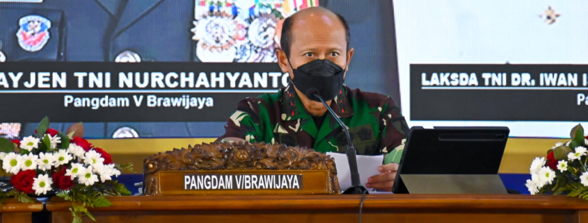 Batu – Pangdam V/Brawijaya Mayjen TNI Nurchahyanto, M.Sc., bersama Forkopimda Jawa Timur menggelar Rapat Koordinasi Angkutan Lebaran Tahun 2022 bertempat di Hotel Singhasari Resort, Kota Batu, Sabtu, (23/4/2022).